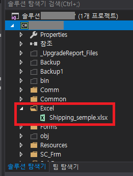 첫번째로 프로젝트에 템플릿으로 사용할 엑셀 문서를 포함 시켜 줍니다