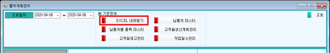 메인 화면에서 아래와 같이 Excel 내려받기를 실행할 버튼을 생성해 줍니다