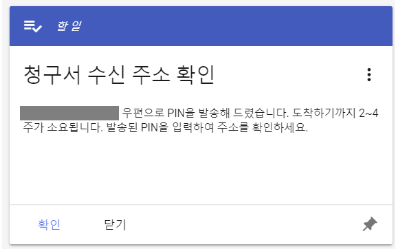 계정에 등록한 주소지가 실거주지가 맞는지 확인을 하기 위한 인증 절차를 거쳐야 한다는 말입니다