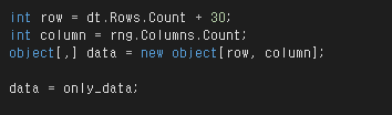 only_data의 object[,]배열을 동일한 object 배열인 data의 배열로 복사 합니다