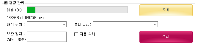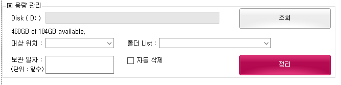 - 조회 버튼 클릭시 지정한 드라이브의 용량을 이렇게 표시 해줍니다