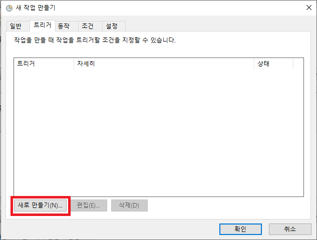 - 상단 트리 메뉴에서 트리거 항목을 클릭하여 새로 만들기를 통해 트리거를 생성합니다