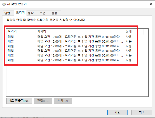 그래서 편법으로 윈도우의 작업스케줄러를 10초 반복하여 수행하는 방법을 알려드릴려고 합니다
