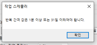 작업 반복 간격의 콤보박스칸에 수동으로 1 분이라고 타이핑 치시면 1분까지는 설정이 가능합니다