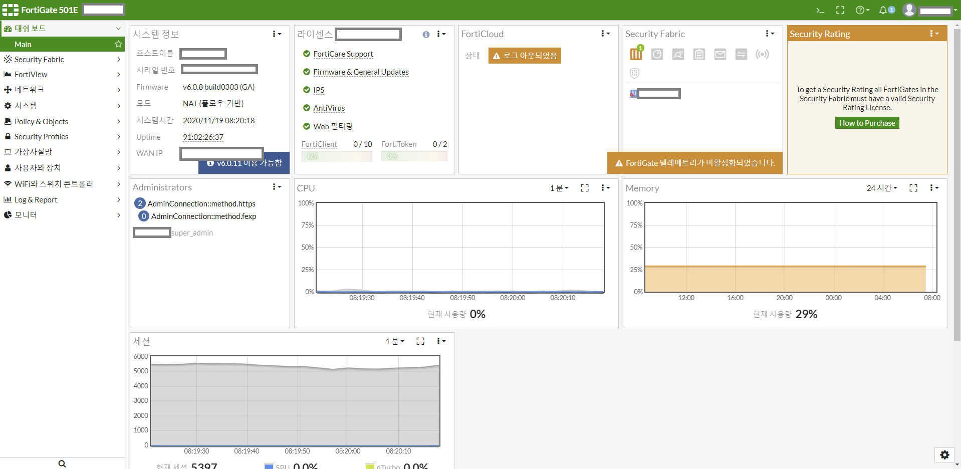 제가 운영하는 회사에서는 다행이 FortiGuard가 있는 라이센스를 보유 중이라 저렇게 활성화가 되어 있는데