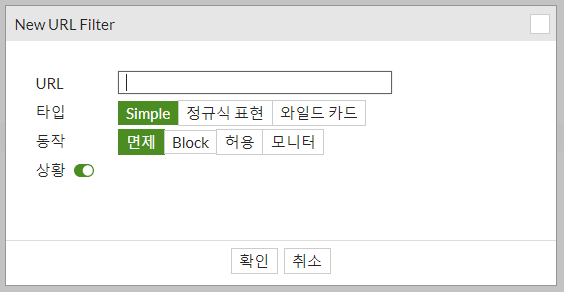 차단하고자 하는 URL를 허용/Block/모니터링 기능을 주어서 개별 관리 할 수 있는 기능입니다