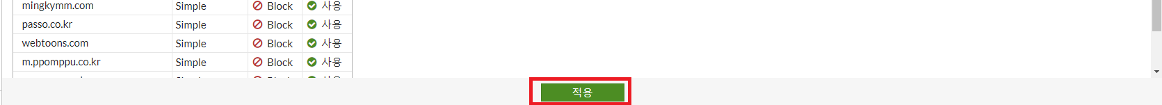 그다음 꼭!! 필수로 하단에 있는 적용 버튼을 눌러 주셔야 합니다