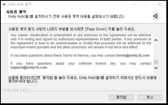 위 링크 사이트로 접속하시면 유니티 허브를 다운로드 받으실수 있습니다