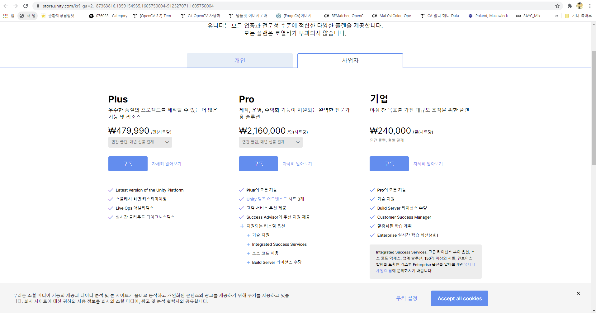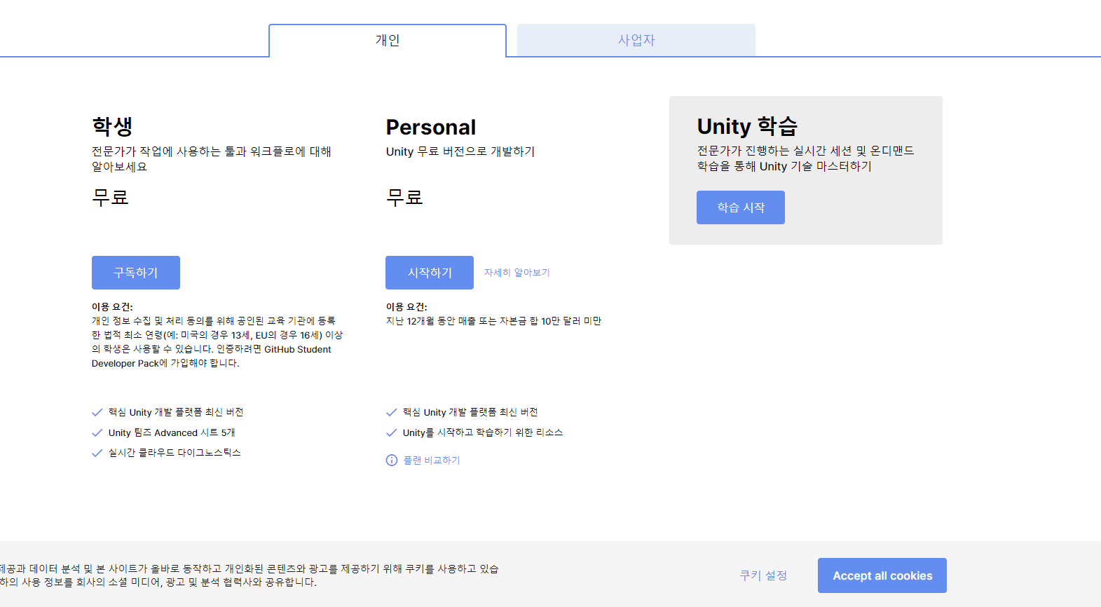 참, 제일 궁금한게 유니티는 무료인가요 유료인가요?