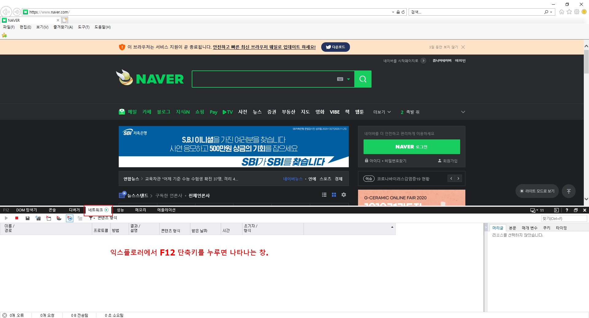 (해당 예시는 Internet Explorer 11 버전을 사용하였습니다)
