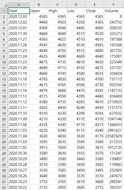 이렇게 파이썬 크롤링을 통한 종가 정보를 가져올 수 있습니다