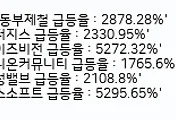 (현재 기준 지난 30일간 주가가 10배 이상 급등한 주가 리스트입니다)