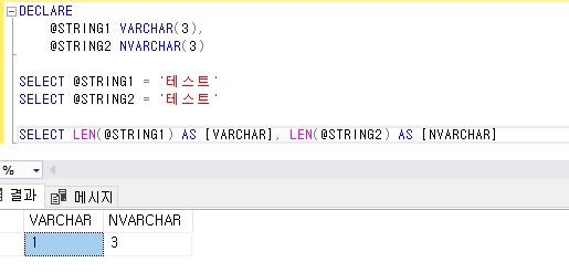 그에 반면 nvarchar(3)은 3자리가 모두 출력되는 결과가 나오네요