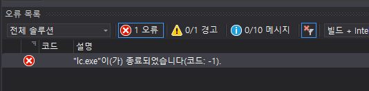 그래서 나는 빌드를 하고 싶은데 "lc.exe"이(가) 종료되었습니다(코드: -1) 오류가 뜰때 해결 할 수 있는 방법을