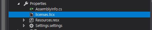 1. 솔루션 탐색기에서 Properties 밑에 있는 licenses.licx 파일 찾습니다