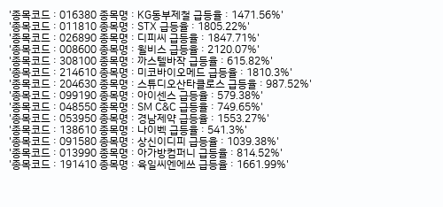 (현재 기준 지난 30일간 주가가 10배 이상 급등한 주가 리스트입니다)