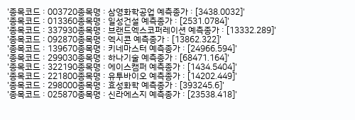위의 주가 리스트는 2021-07-02 09:54:04 기준으로 취합된 데이터로 작성된 자료 입니다