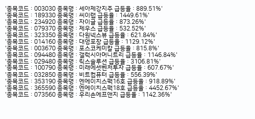 (현재 기준 지난 30일간 주가가 10배 이상 급등한 주가 리스트입니다)