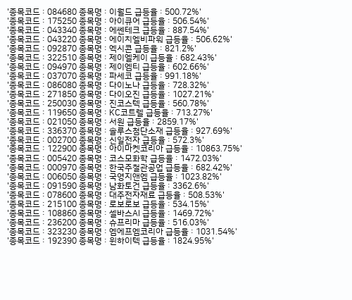 (현재 기준 지난 30일간 주가가 10배 이상 급등한 주가 리스트입니다)