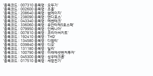 위의 주가 리스트는 2021-07-16 11:39:33 기준으로 취합된 데이터로 작성된 자료 입니다