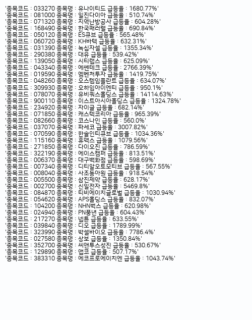 (현재 기준 지난 30일간 주가가 10배 이상 급등한 주가 리스트입니다)