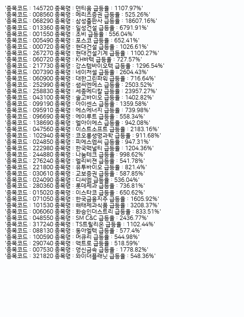 (현재 기준 지난 30일간 주가가 10배 이상 급등한 주가 리스트입니다)