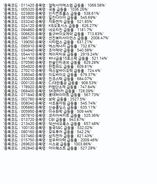 (현재 기준 지난 30일간 주가가 10배 이상 급등한 주가 리스트입니다)