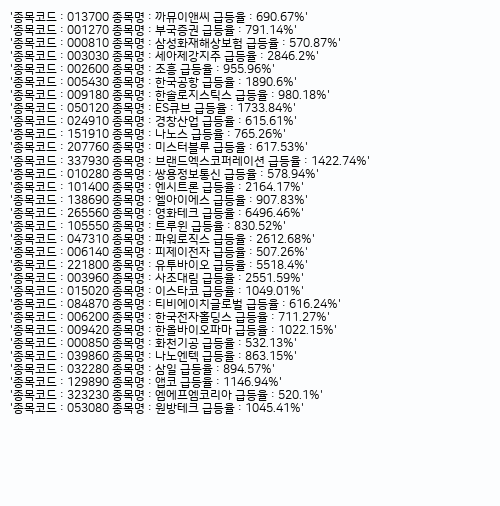 (현재 기준 지난 30일간 주가가 10배 이상 급등한 주가 리스트입니다)
