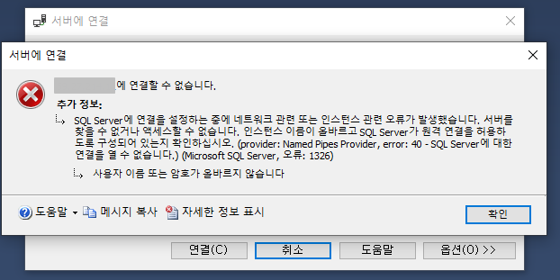 테스트를 진행해 보면 다음과 같이 MSSQL 접근이 차단이 됩니다