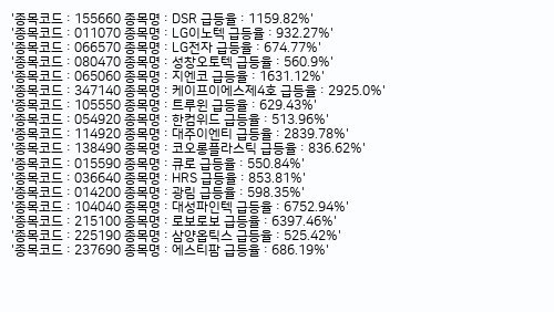 (현재 기준 지난 30일간 주가가 10배 이상 급등한 주가 리스트입니다)
