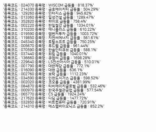 (현재 기준 지난 30일간 주가가 10배 이상 급등한 주가 리스트입니다)
