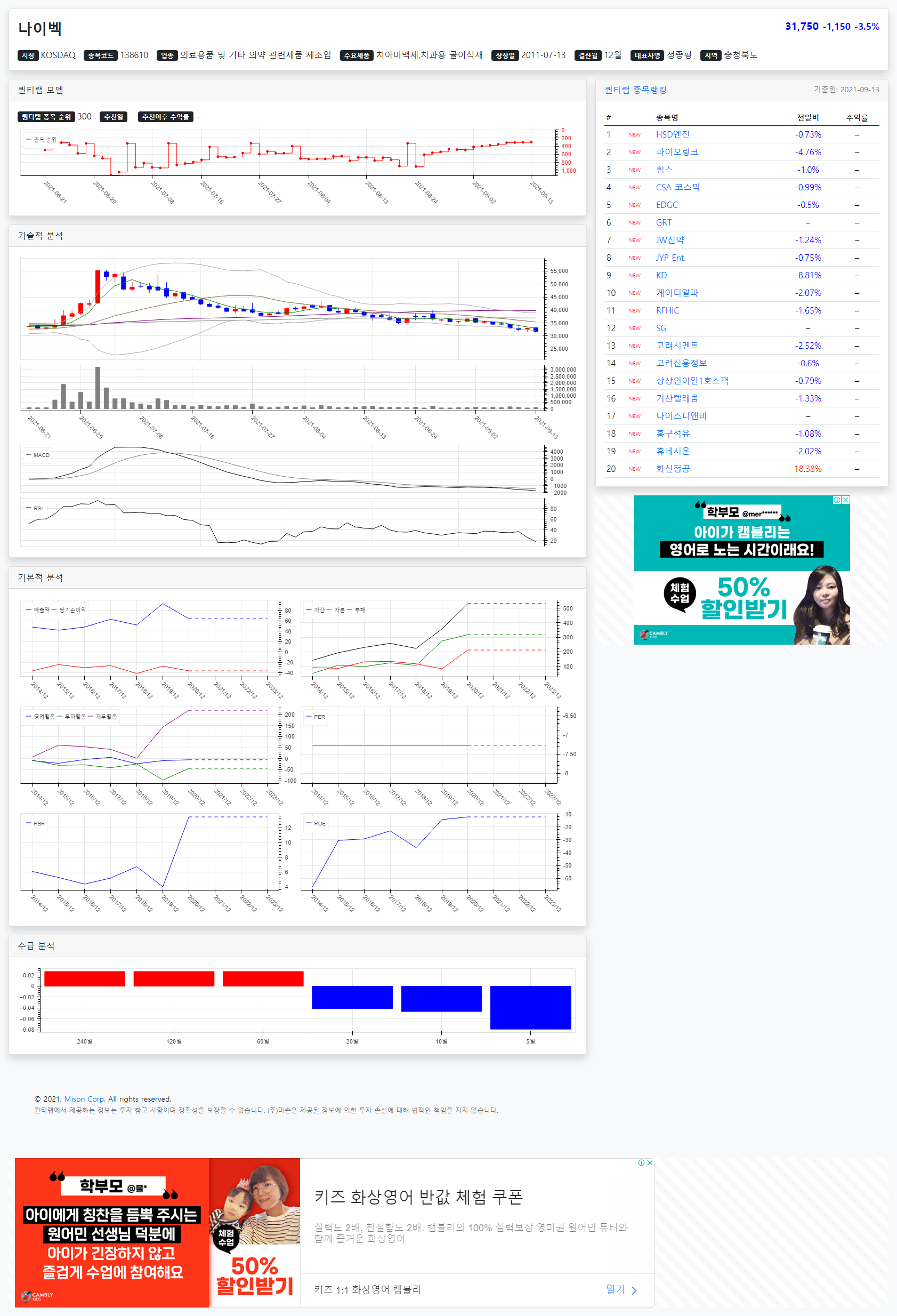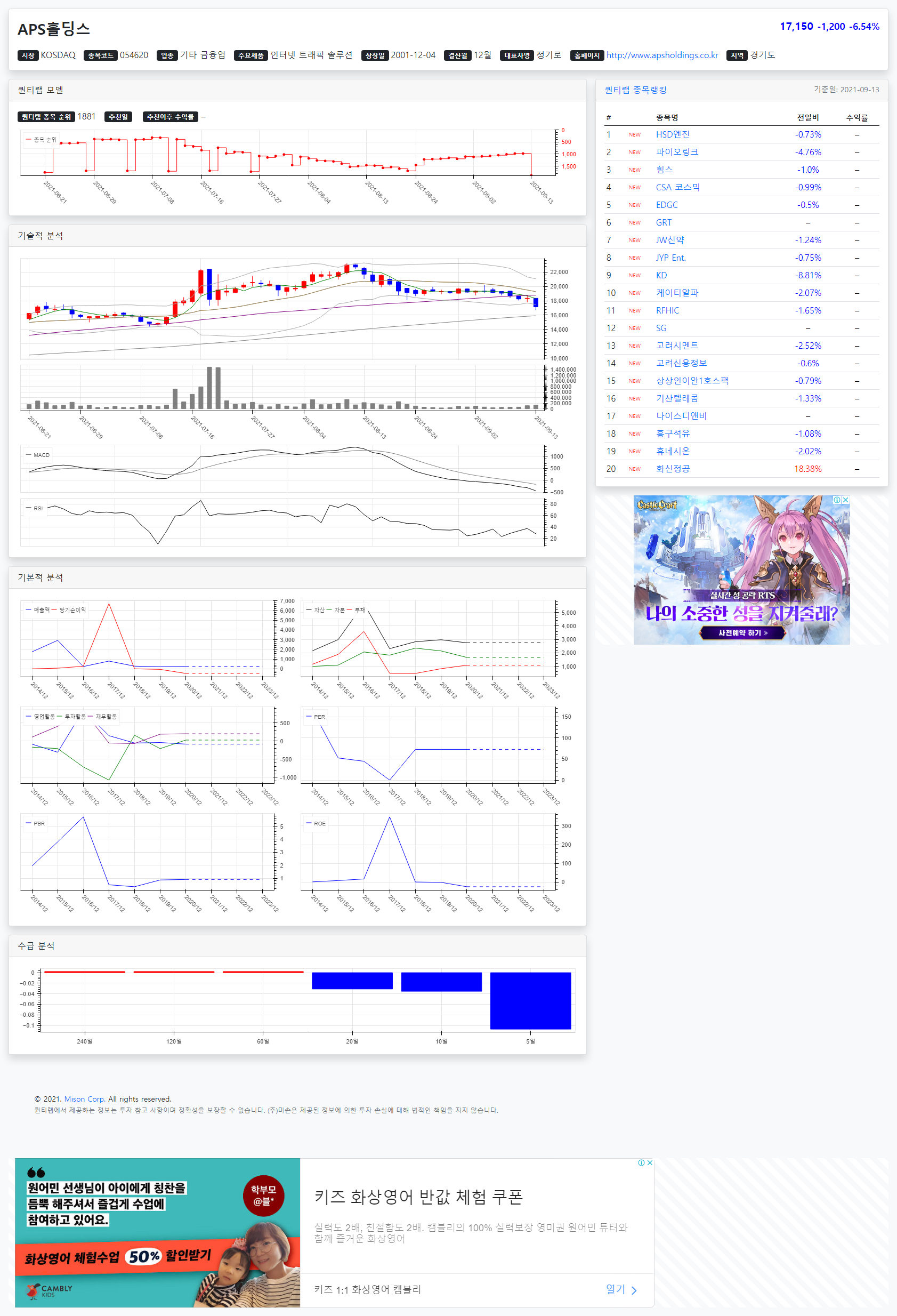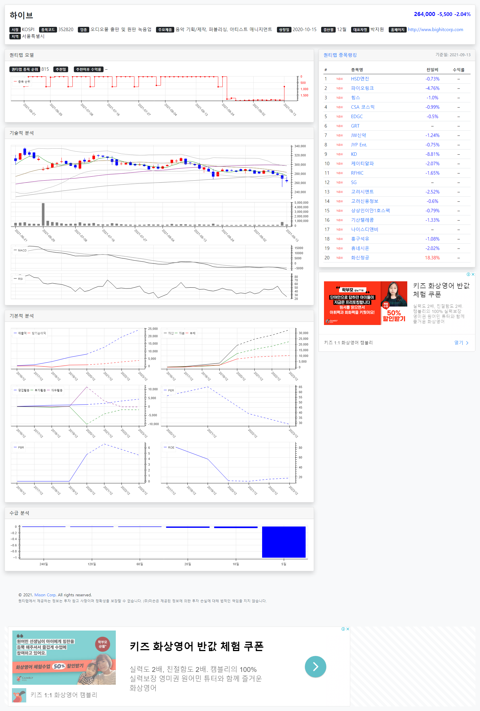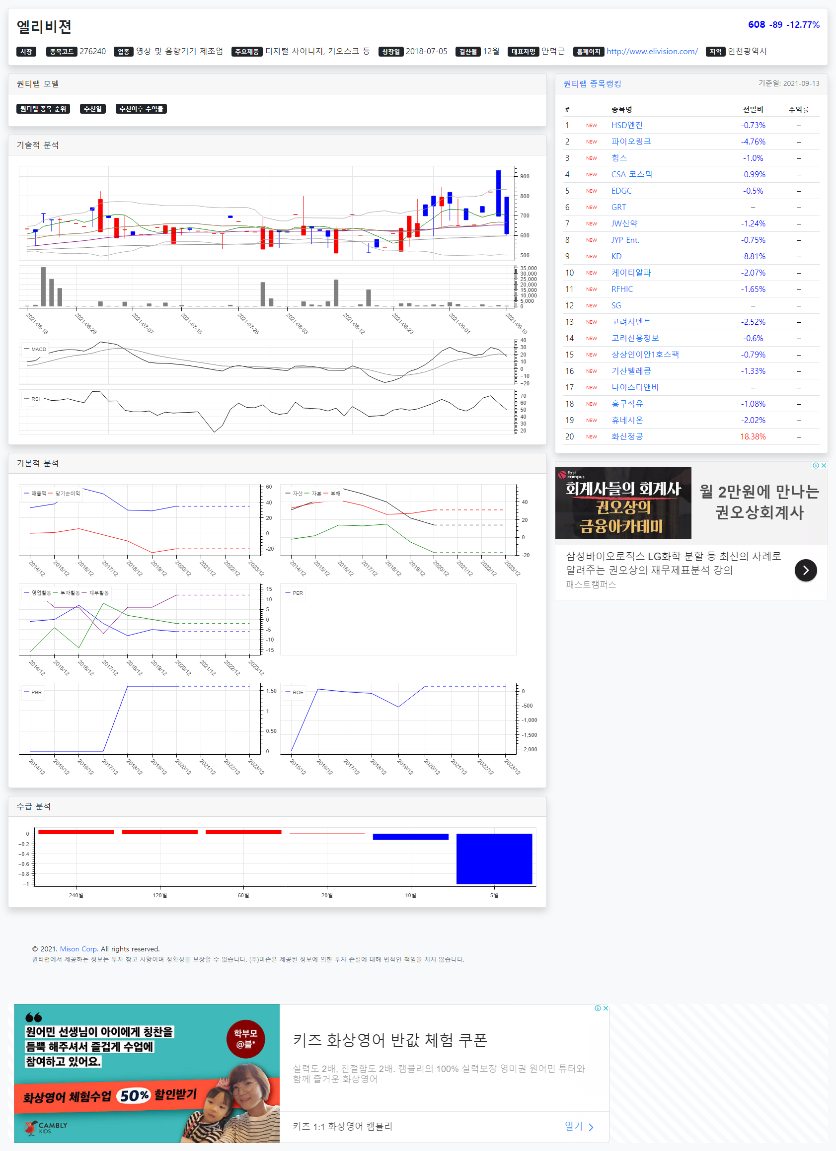 위의 주가 리스트는 2021-09-15 14:11:14 기준으로 취합된 데이터로 작성된 자료 입니다