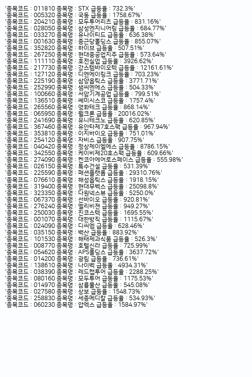 (현재 기준 지난 30일간 주가가 10배 이상 급등한 주가 리스트입니다)