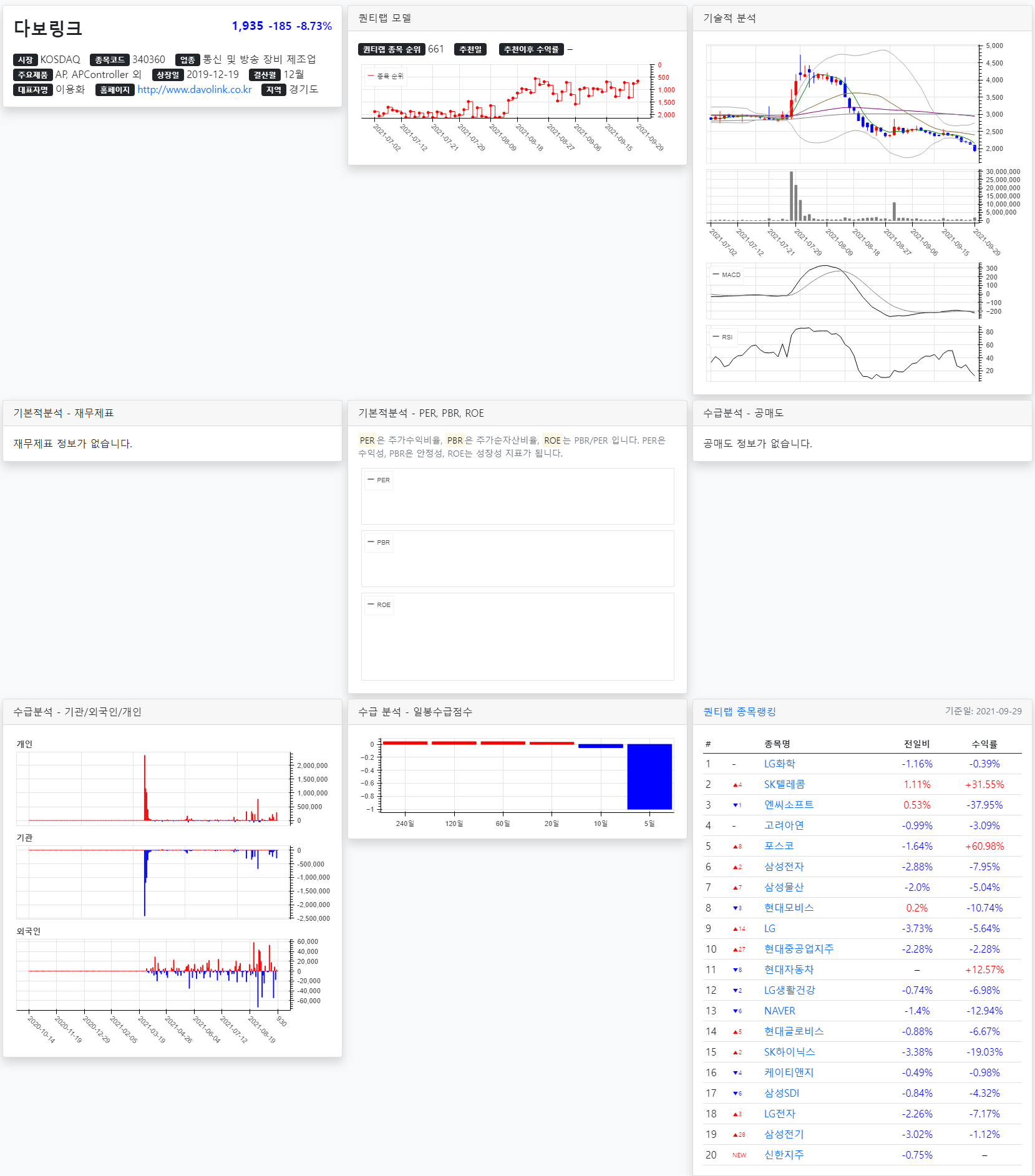 위의 주가 리스트는 2021-09-29 19:02:02 기준으로 취합된 데이터로 작성된 자료 입니다