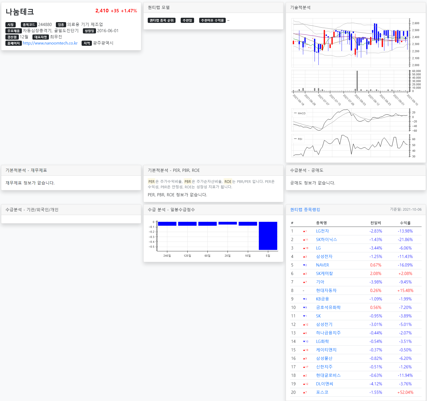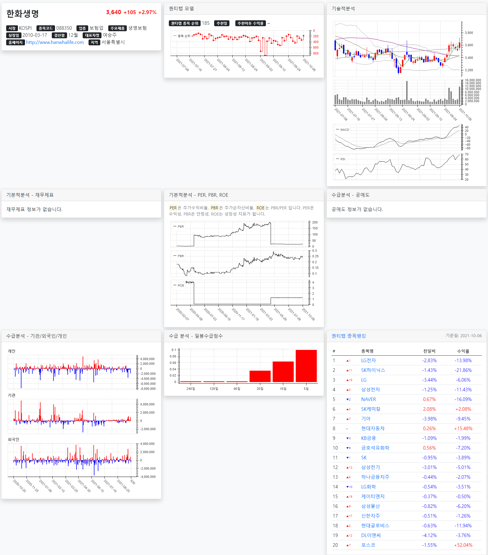 위의 주가 리스트는 2021-10-06 21:13:03 기준으로 취합된 데이터로 작성된 자료 입니다