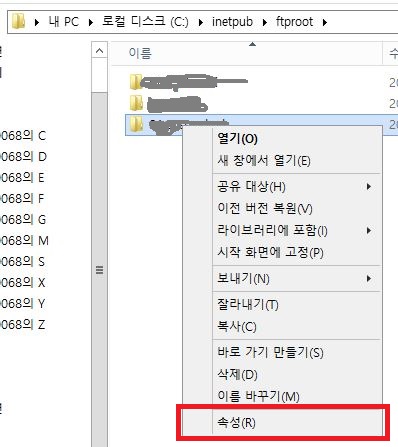 - 웹사이트 등록시 실제 경로의 위치의 폴더에서 마우스 오른쪽 버튼 클릭하여 속성 클릭