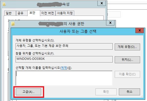 13. 사용자 또는 그룹 선택 화면에서 고급 항목 클릭