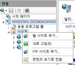 - 사이트 항목에서 마우스 오른쪽 버튼을 클릭하여 웹 사이트 추가를 클릭