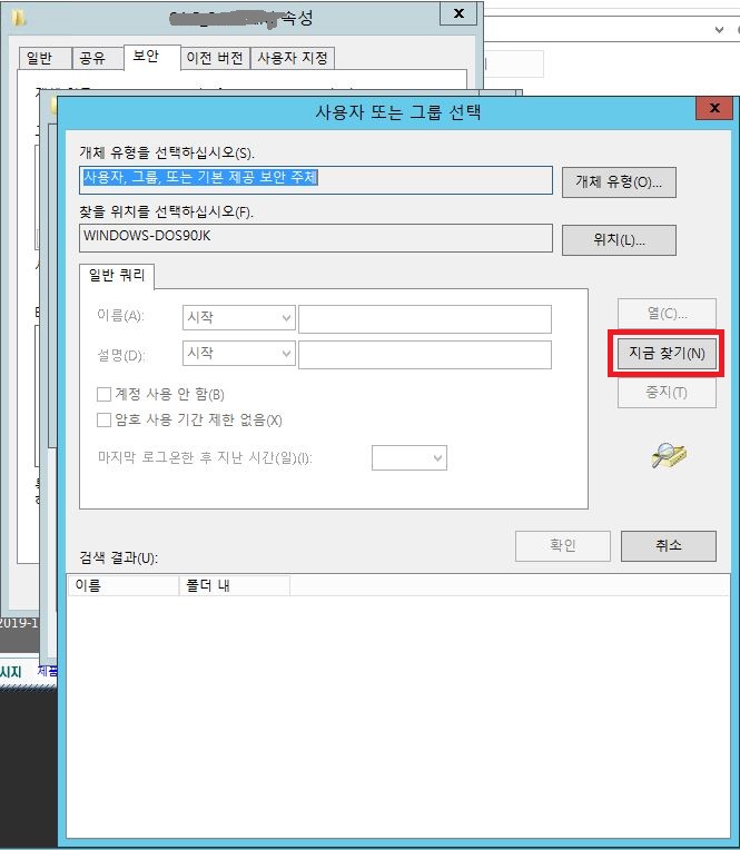 14. 사용자 또는 그룹선택 고급 화면에서 지금찾기 버튼 클릭
