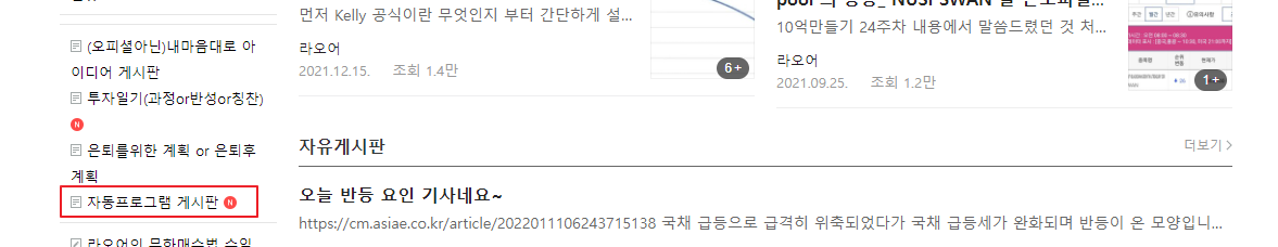 해당 카페에 가입을 한뒤에 좌측 메뉴를 보시면 다음과 같은 카테고리가 있습니다