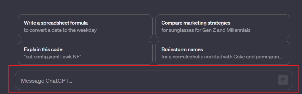 Message ChatGPT... 부분에 복사한 명령프롬프트를 넣어 주세요