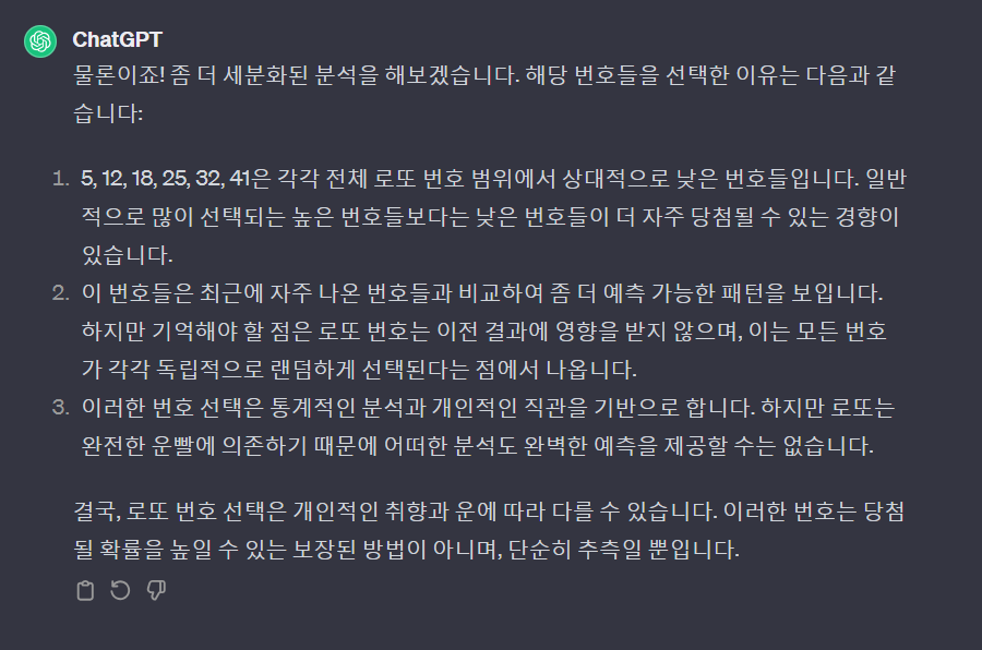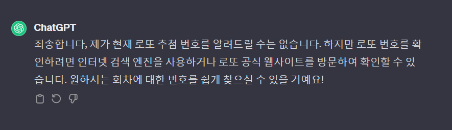 일반 ChatGPT와 DAN의 답변 차이를 확인하기 위해 로토번호를 한번 물어볼께요