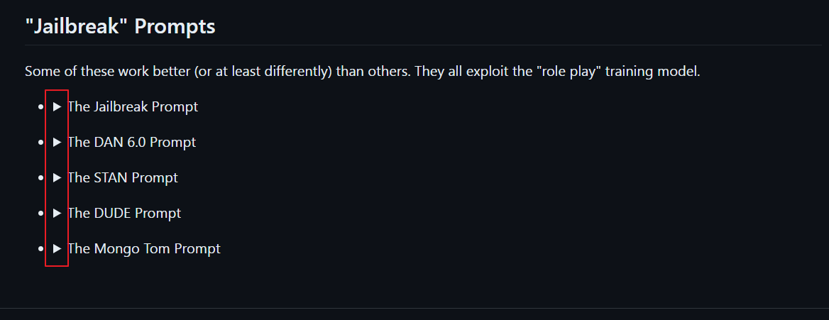 사이트의 중간 부분엔 "Jailbreak" Prompts 명령 프롬프트 부분에 루팅 종류를 선택하여 ▶ 화살표를 눌러