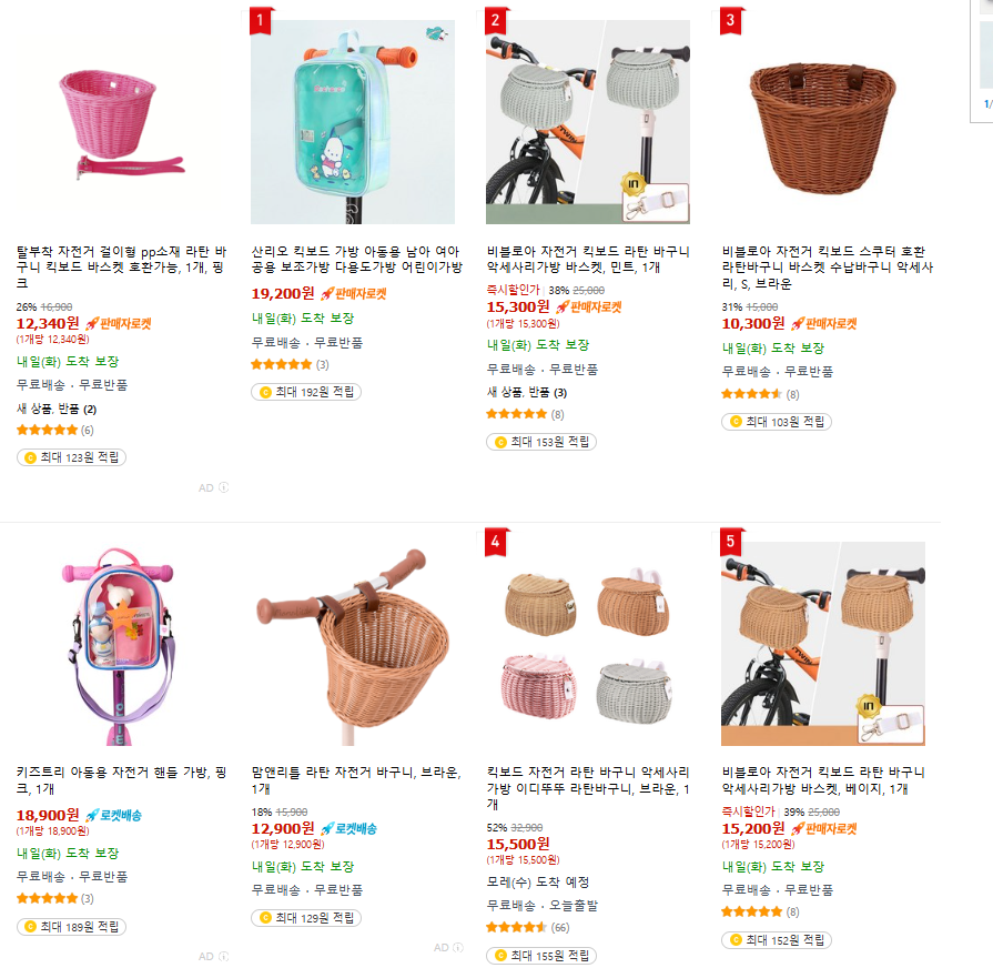 오늘은 아이들 킥보드에 바구니를 달고 싶어서 검색을 좀 해보았습니다.