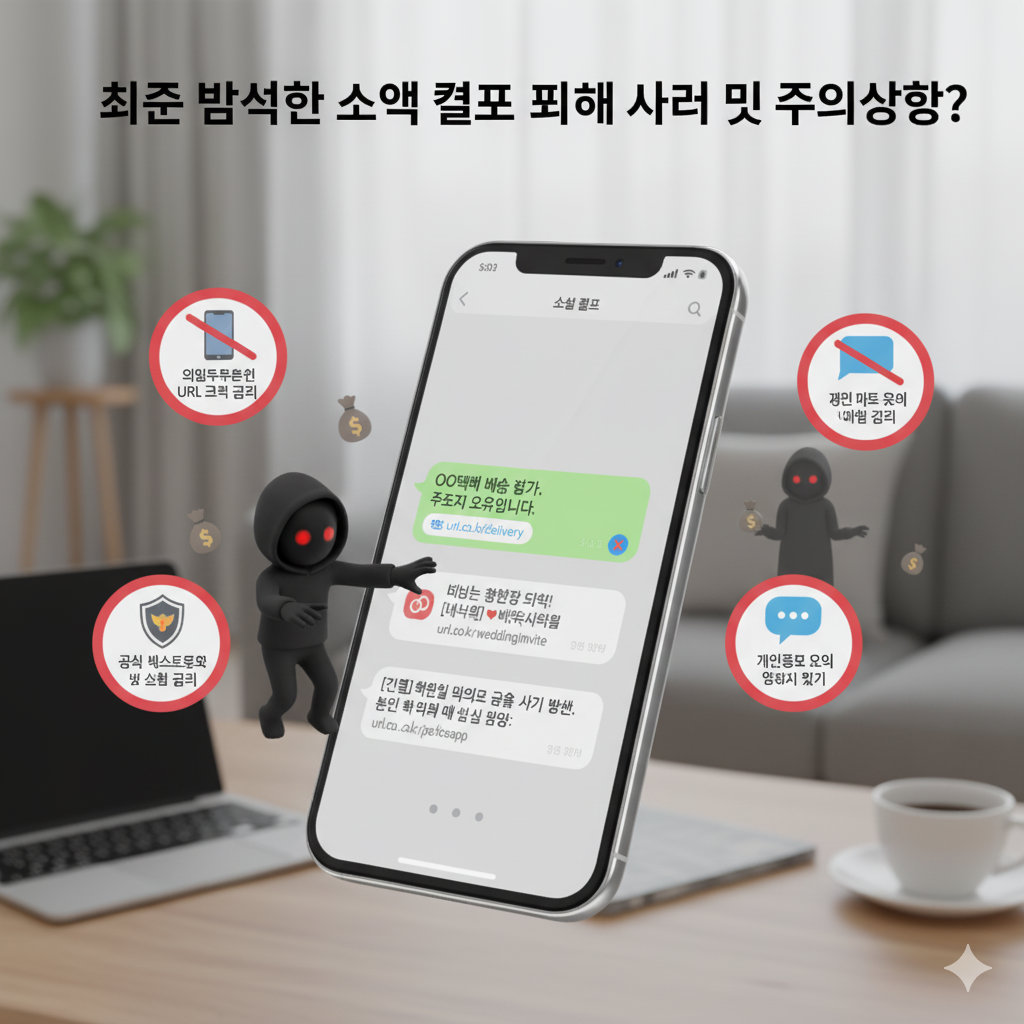 - 의심스러운 URL 클릭 금지: 출처가 불분명한 문자 메시지의 URL은 절대 클릭하지 않습니다.