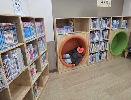 🔍 작지만 알찬 시설 (도서 검색대 & 내부 화장실) 도서관 내부에 도서 검색대가 1대 마련되어 있어, 아이가 읽고 싶어 하는 책이 있는지 바로바로 확인해 볼 수 있었어요. 무엇보다 좋았던 점은 화장실이 도서관 안에 있다는 것! 아이랑 책 읽다가 갑자기 화장실 가고 싶다고 할 때 밖으로 나가지 않아도 되니 동선이 정말 편하더라고요. (육아맘들은 이 편리함 다들 아시죠? 😊)