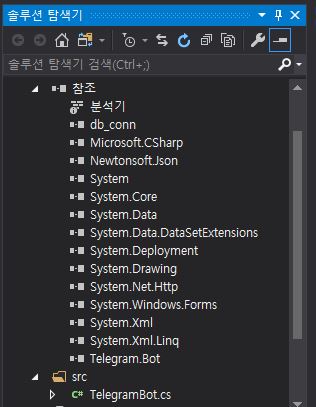 설치하게 되면 Telegram.Bot이라는 참조가 생성이 됩니다