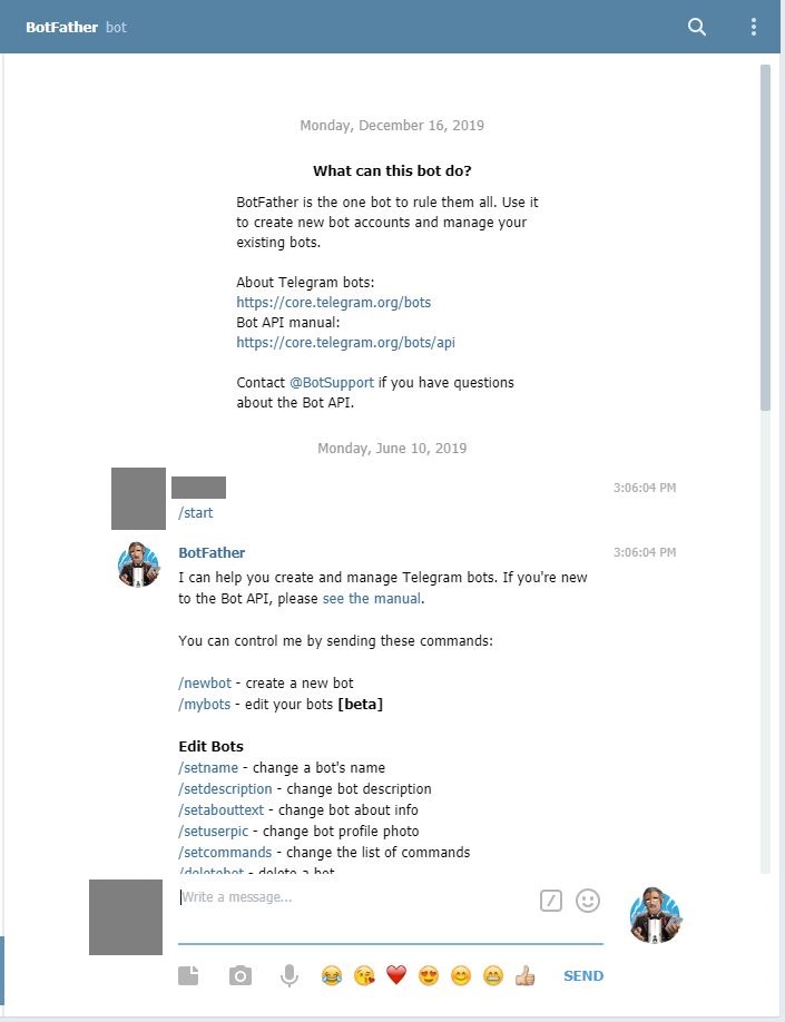 /start 텔레그램을 시작하겠다는 말을 봇아버지에게 하는거죠