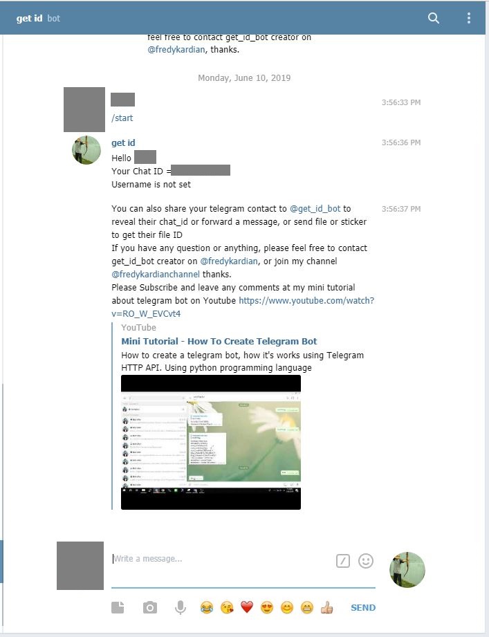Your Chat ID = "xxxxxxxxx"라고 알려줍니다