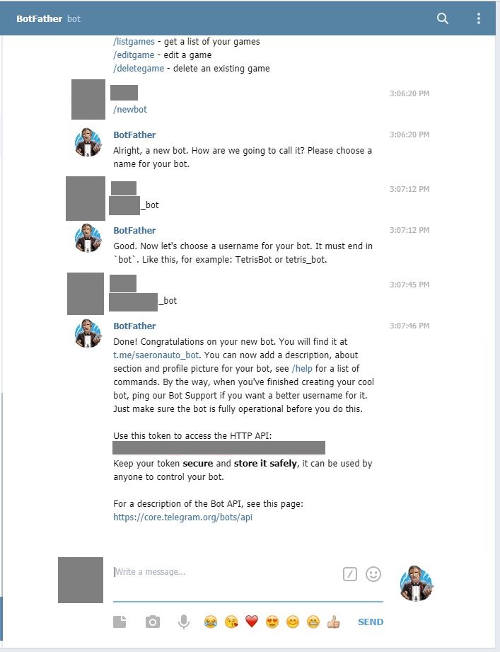 그다음 봇아버지에게 /newBot이라고 말은 걸면 아버지가 물어볼꺼에요 봇이름은 무엇으로 할거니?